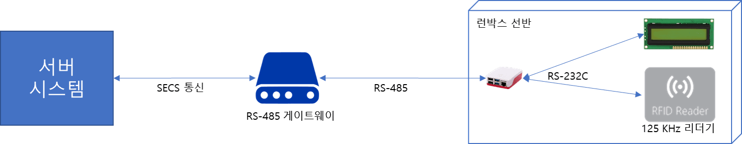 반도체 공정에서 웨이퍼를 담는 런박스의 자동 이송을 위해 설계된 선반 컨트롤러는, 상위 서버와는 RS-485 게이트웨이를 통해 통신하며, 선반에 장착된 125kHz RFID 리더기와 LCD 모듈을 제어합니다. 런박스의 입출 정보 및 시스템 상태는 실시간으로 기록되며, 송수신되는 모든 데이터는 로그 파일로 저장되어 장애 발생 시 신속한 분석이 가능하도록 구성되어 있습니다.