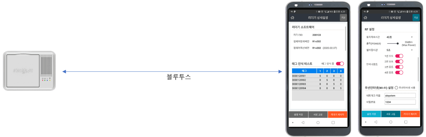 어린이집과 유치원 입구에 설치된 RFID 리더기를 제어하기 위해, 원생의 등·하원 정보를 자동으로 보호자에게 전달하는 시스템의 일환으로 안드로이드용 설정 앱을 개발하였습니다. 이 앱은 블루투스를 통해 RFID 리더기와 통신하며, 리더기의 모든 설정을 앱에서 직접 구성할 수 있도록 지원합니다. 또한 펌웨어 업데이트와 태그 리딩 테스트 기능도 포함되어 있어, 현장에서의 유지보수와 기능 검증을 간편하게 수행할 수 있습니다.